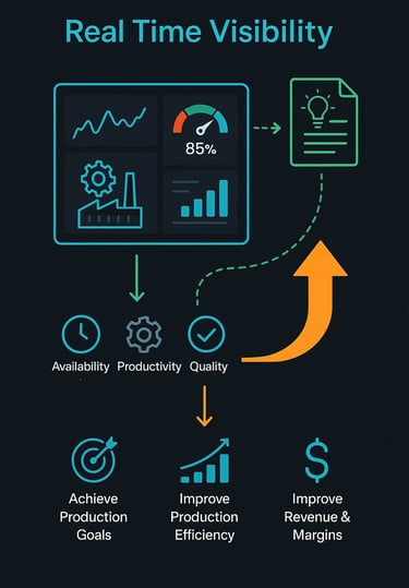·Track real-time operational KPIs (OEE, yield, downtime)
